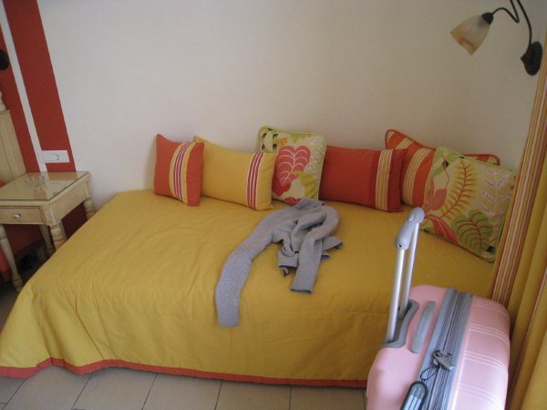 房間就面對海邊,我們定的是沒有陽台的,但是門口還是有自己的小桌子,有陽台的在頂樓有自己的獨立陽台但是比較貴