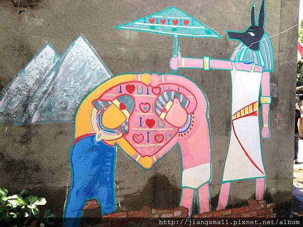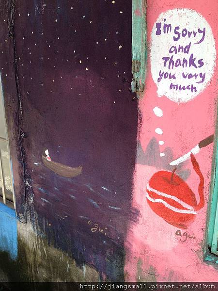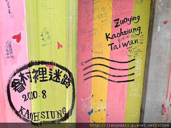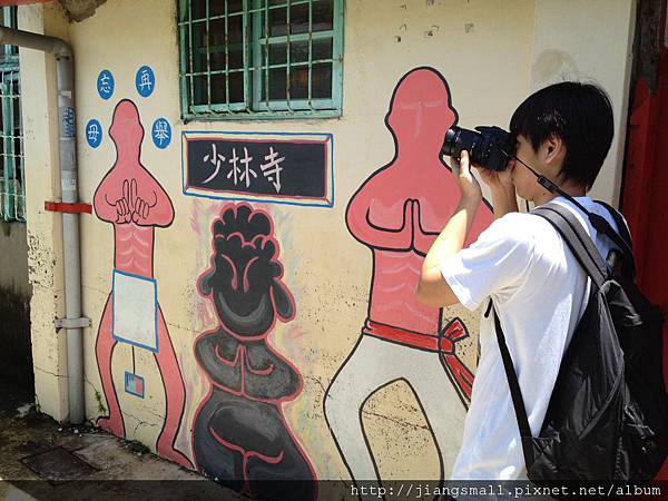 一到高鐵左營站約10點半,就直接坐公車(紅51)到左營的彩虹眷村(自助新村)。很有趣,彩繪自己家牆壁,有些是請人作畫的。因為也沒有準備行程,就在巷子裡隨意的走。