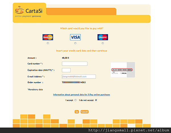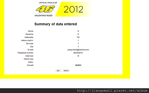 填好後,會在show一次資料。確定無誤點選 [ GO ] 付款