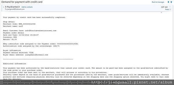 第一封,信用卡付款的資訊。