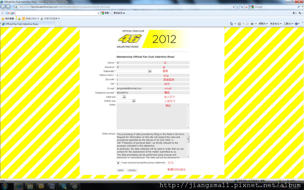 首先,請先到rossi fan club的網頁http://www.fanclubvalentinorossi.com/membership/?lang=en