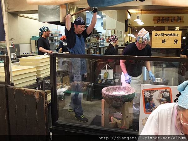 店裡面有在搗麻糬,嘿咻~嘿咻~(現場觀眾會一起喊喔~~~)