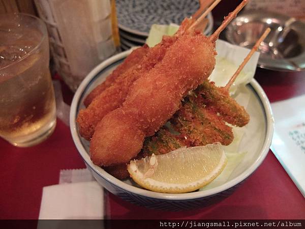 5種炸串-有鳥蛋、蝦子、四季豆、蓮藕、魚