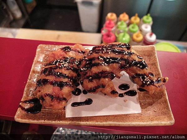 上麵的醬是甜的。。。沒有和我的胃口,但是雞翅本身真的炸的好吃。。。