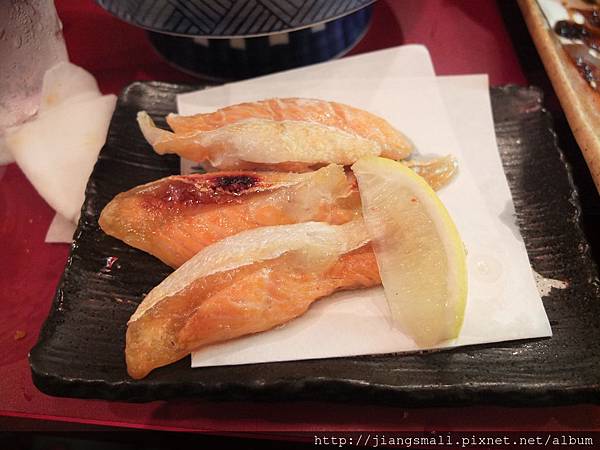 鮭魚塩燒-嫩,新鮮,好吃。(能讓基隆的機車王先生稱讚的不多)