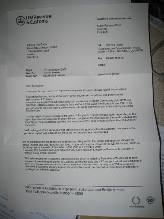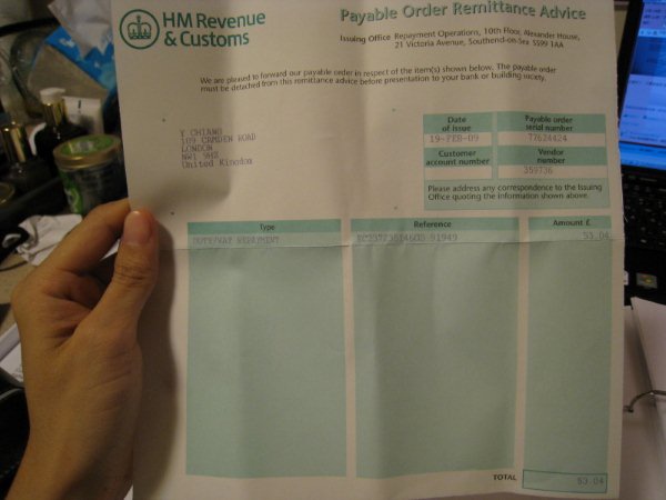 就再等待的同時,看到hello uk上有人被課稅的情形...