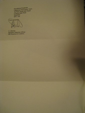 by a Customs Officer at this site and will require the parcel recalling